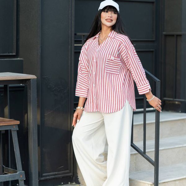 شومیز راه راه لینن آستین کیمونو